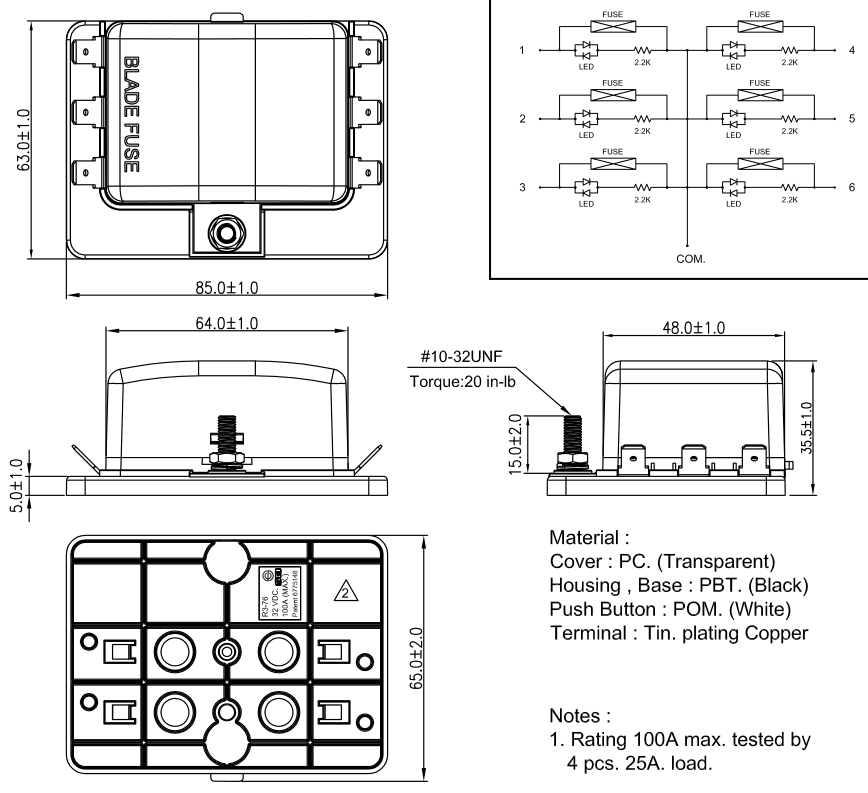 1.適合船舶、房車或外部裝修類型應(yīng)用的保險絲盒,透明防護罩防水防塵、污垢進入 2.保險絲損壞時,紅色 LED 指示, 按下閂鎖即可輕鬆打開